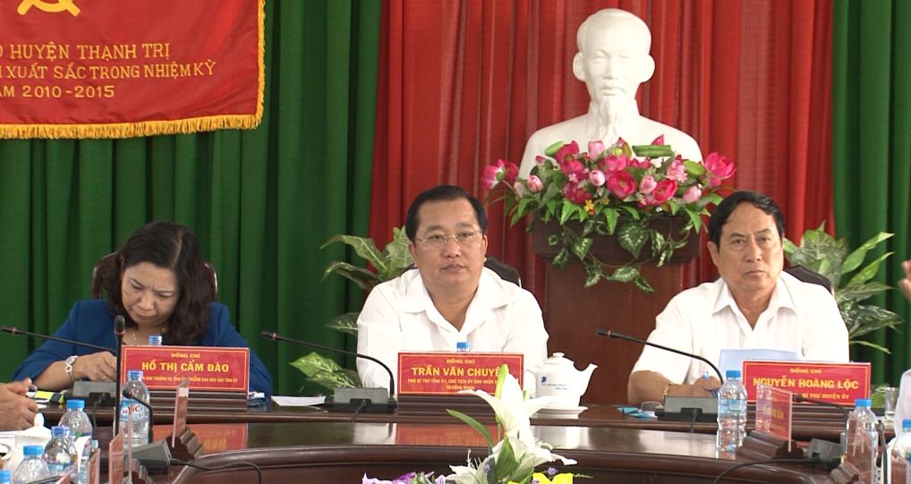 Chiều ngày 11/7, ông Trần Văn Chuyện, Phó Bí thư Tỉnh ủy, Chủ tịch UBND tỉnh Sóc Trăng; bà Hồ Thị Cẩm Đào, Trưởng Ban Dân vận Tỉnh ủy cùng đoàn công tác, có buổi làm việc với Huyện ủy Thạnh Trị về tình hình kinh tế - xã hội của huyện 6 tháng đầu năm 2017.