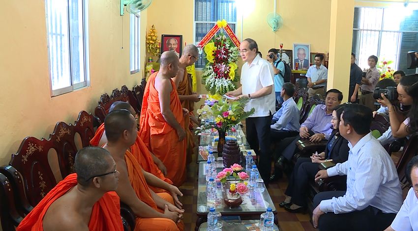 Đồng chí Nguyễn Thiện Nhân chúc Tết Chôl Chnăm Thmây tại Hội Đoàn kết sư sãi yêu nước tỉnh Sóc Trăng