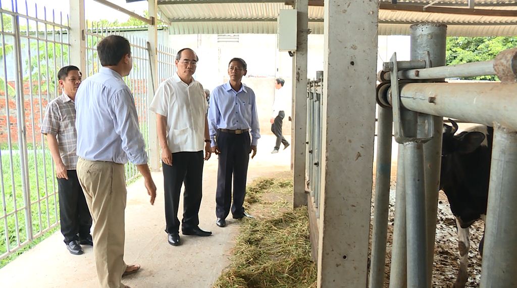 Chủ tịch Ủy ban Trung ương MTTQ Việt Nam đến thăm mô hình nuôi bò ở xã Tài Văn