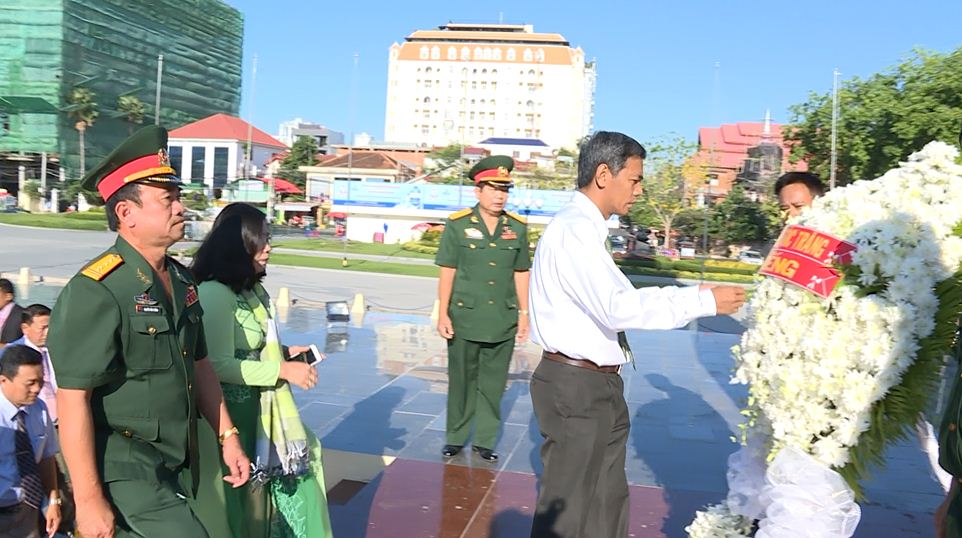 Đoàn đã đến đặt vòng hoa tưởng niệm các chiến sĩ quân tình nguyện Việt