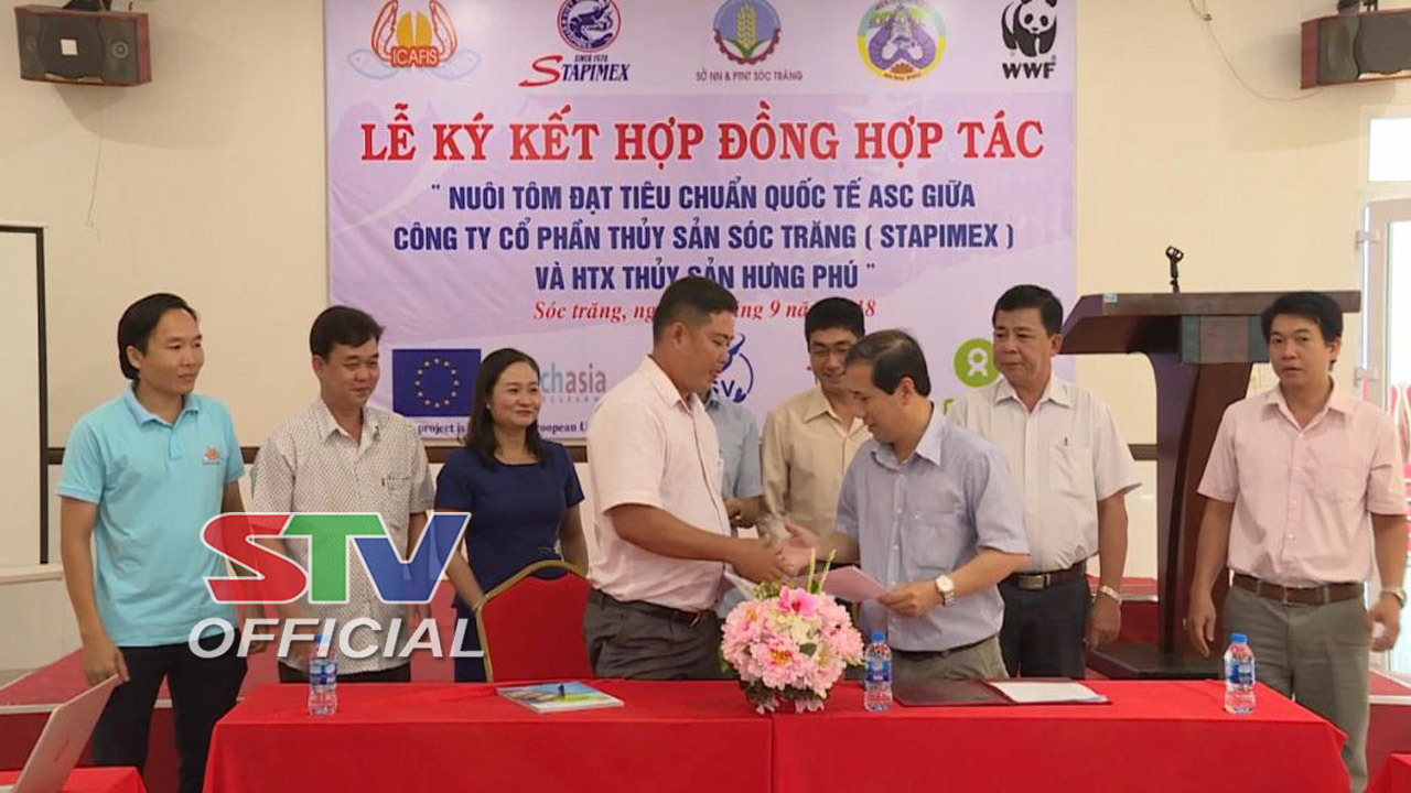 à được công ty xuất khẩu trong tỉnh ký hợp đồng thu mua cao hơn giá thị trường bên ngoài. Cuối tháng 9/2018, Trung tâm Hợp tác Quốc tế Nuôi trồng và Khai thác thủy sản bền vững đã phối hợp với Chi cục Thủy sản Sóc Trăng, Quỹ quốc tế bảo vệ thiên nhiên chức buổi lễ ký kết hợp đồng nuôi tôm theo tiêu chuẩn ASC giữa Công ty cổ phần thủy sản Sóc Trăng (Stapimex) với Hợp Tác xã (HTX) Thủy sản Hưng Phú. ASC là tiêu chuẩn quốc tế nghiêm ngặt nhất áp dụng cho nuôi trồng thủy sản là bộ tiêu chuẩn dựa trên 4 nền tảng chính là môi trường, xã hội, an sinh động vật và an toàn thực phẩm. Liên kết sản xuất theo tiêu chuẩn này đáp ứng nhu cầu ngày một tăng của khách hàng với các sản phẩm sạch và bền vững. Giá trị sản phẩm được nâng lên, thu nhập của hộ nuôi tôm từ đó gia tăng. Ông Nguyễn Văn Sang, Thành viên HTX Thủy sản Hưng Phú nói: “cái lợi của việc thành lập HTX, chúng tôi hợp đồng trực tiếp đầu vào thức ăn, giống, thuốc thủy sản…giảm được một phần chi phí. Được sự hỗ trợ của Nhà nước, đặc biệt là Sở Nông nghiệp hỗ trợ quy trình nuôi tôm Vietgap, được Công ty Thủy sản sạch hợp đồng mua giá cao hơn thị trường từ 3.000 đến 5.000 đồng/kg tôm thương phẩm. Công ty Thủy sản Stapimex hợp đồng thực hiện quy trình nuôi tôm chuẩn ASC”.