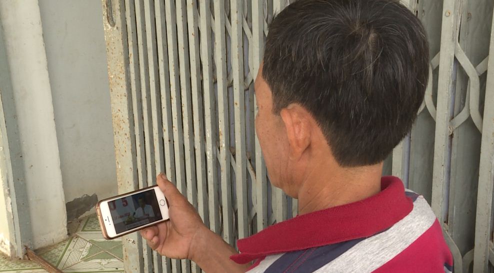 Ông Thạch Nhân ở xã Thuận Hưng theo dõi kỳ họp HĐND tỉnh qua điện thoại di động.