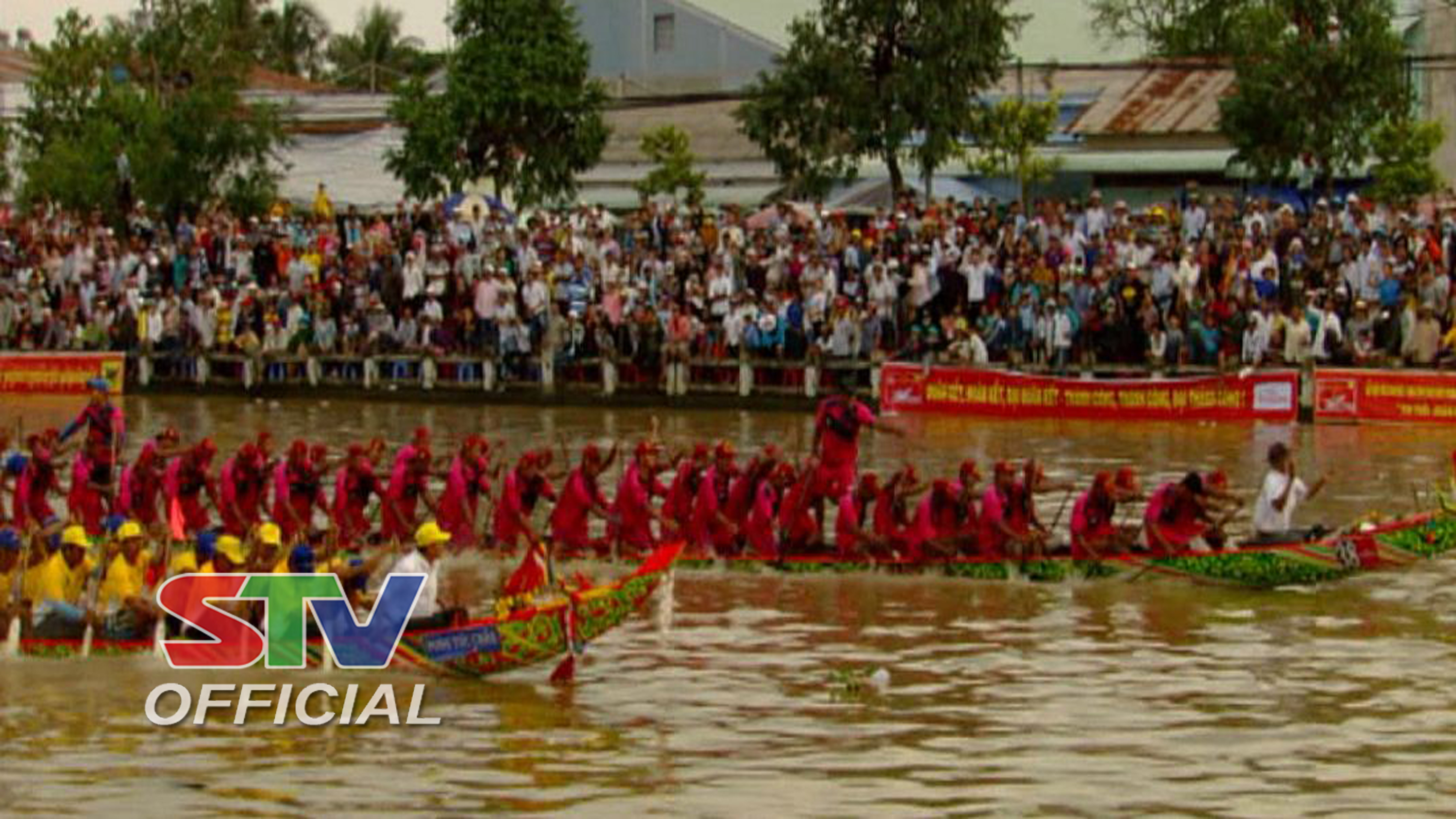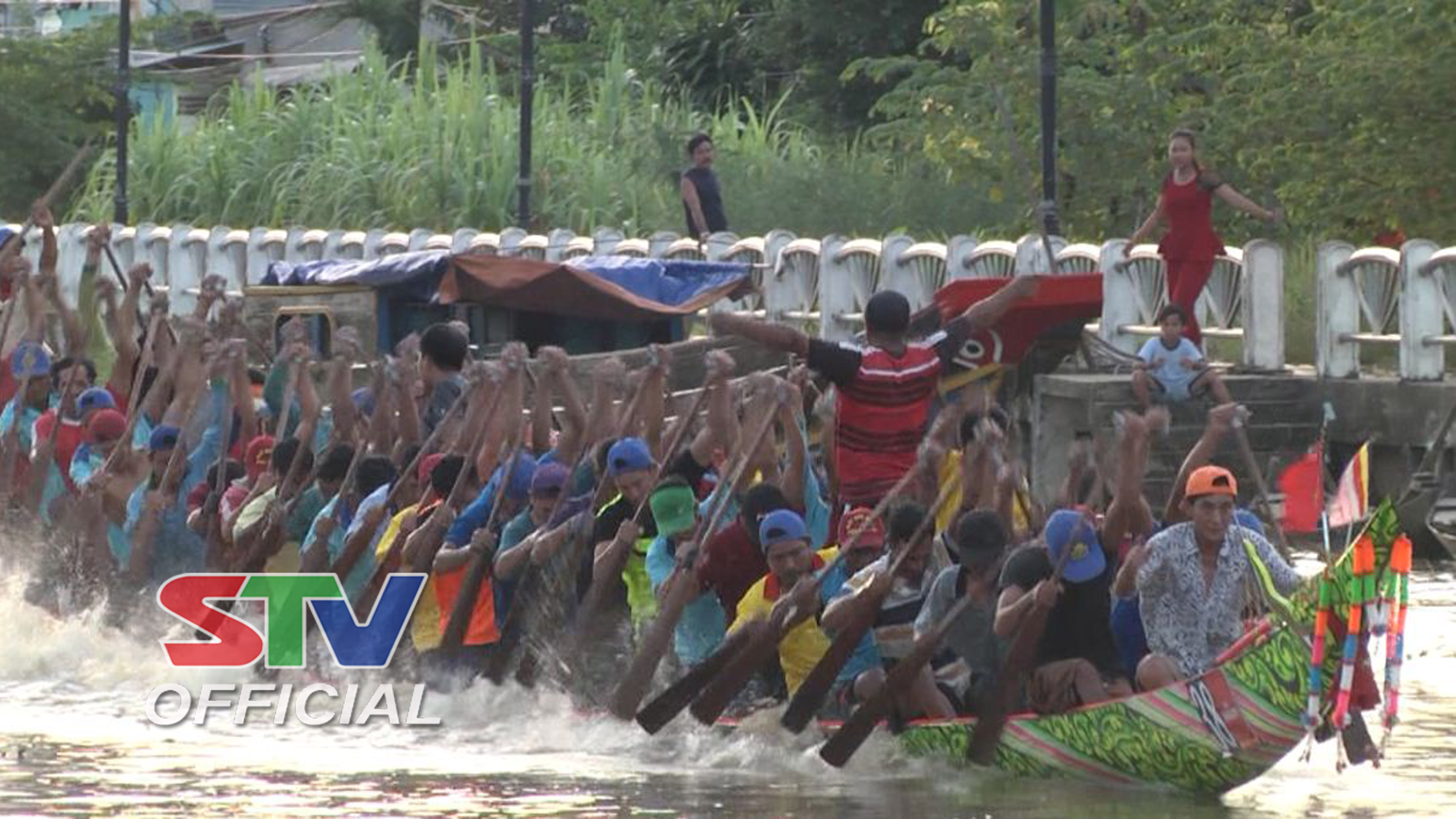 Ghe Ông Kho ( áo đỏ) Giây phút nước rút về đích tại Lễ hội Oóc om bóc – Đua ghe Ngo Sóc Trăng 2017