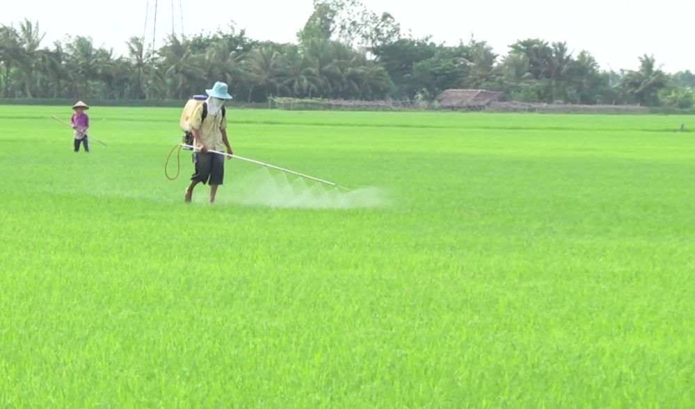 Nông dân Long Phú tích cực thăm đồng, phòng trừ sâu bệnh.