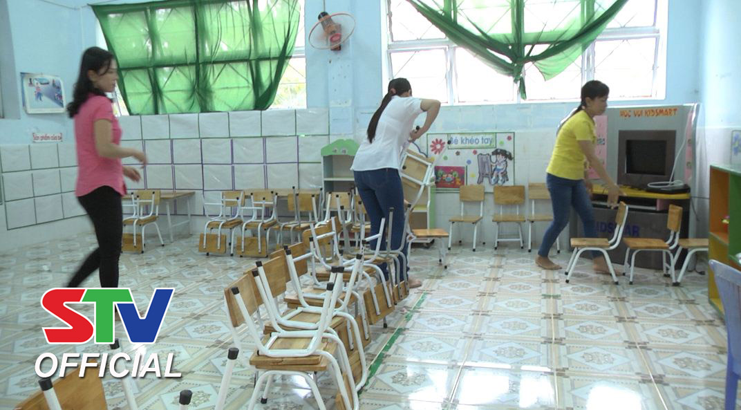 Công tác vệ sinh lớp học trước khi đón trẻ vào lớp