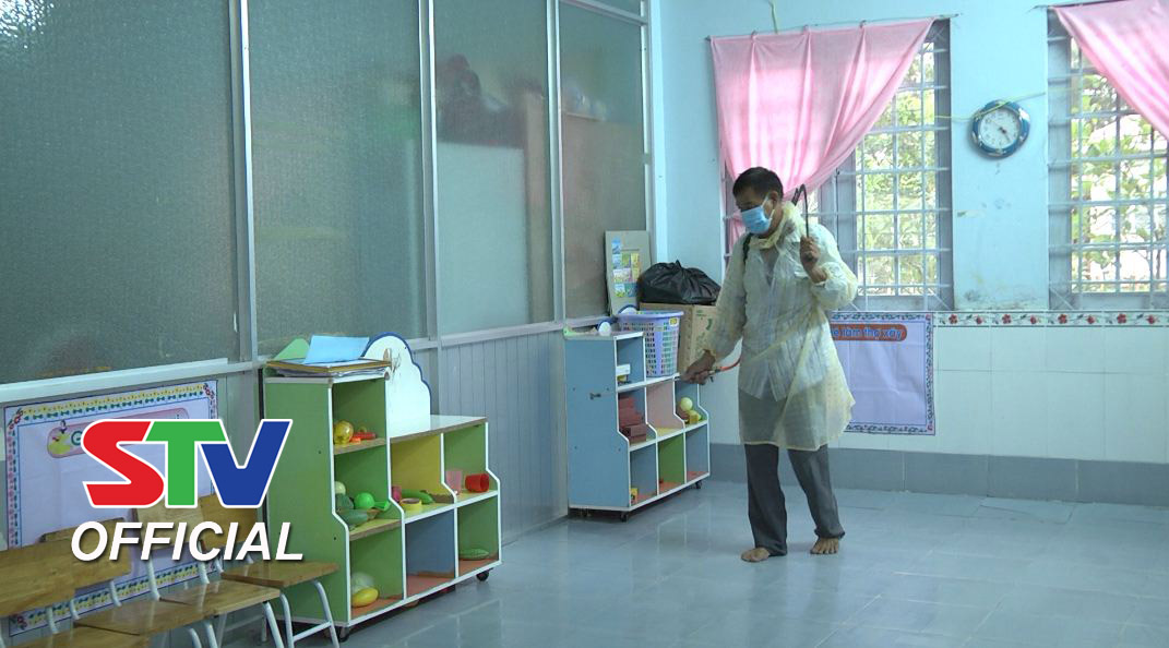 Sân chơi ngoài trời cho trẻ luôn được phun thuốc khử trùng phòng ngừa dịch bệnh.
