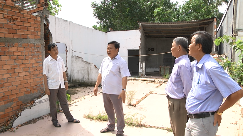 Ông Lê Văn Hiểu ( giữa) Phó Chủ tịch UBND tỉnh Sóc Trăng đi kiểm tra tình hình sạt lở bờ sông