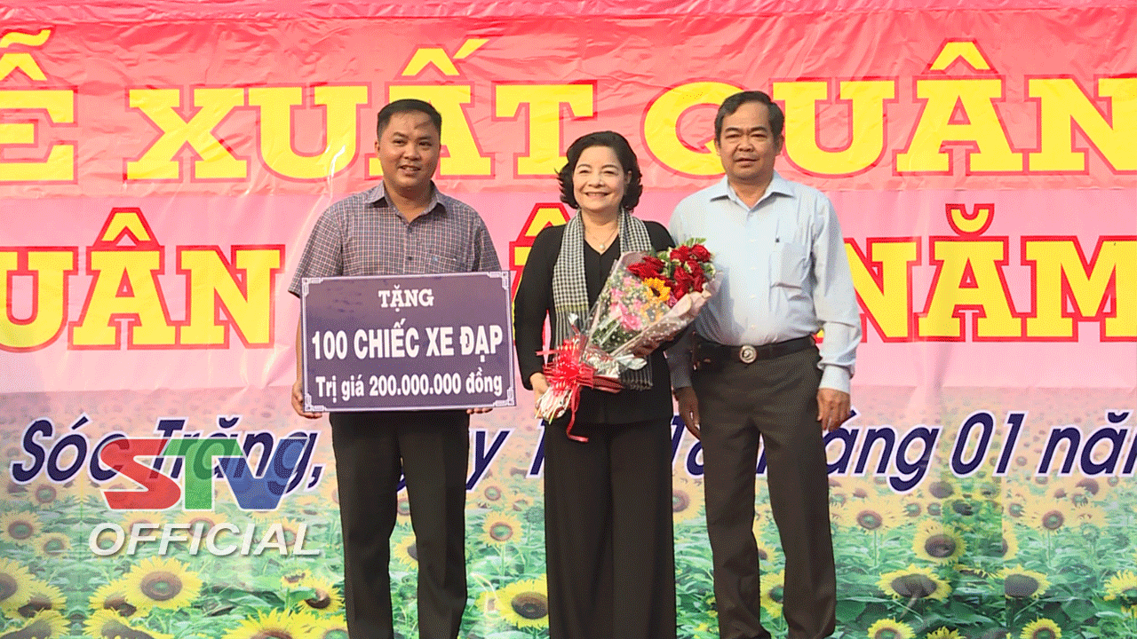 Tại lễ xuất quân, bà Nguyễn Thị Như Thủy, Chủ tịch Hội đồng hương tỉnh Sóc Trăng tại Thành phố Hồ Chí Minh đã trao bảng tượng trưng tặng 100 chiếc xe đạp cho học sinh nghèo hiếu học trên địa bàn huyện trị giá 200 triệu đồng.