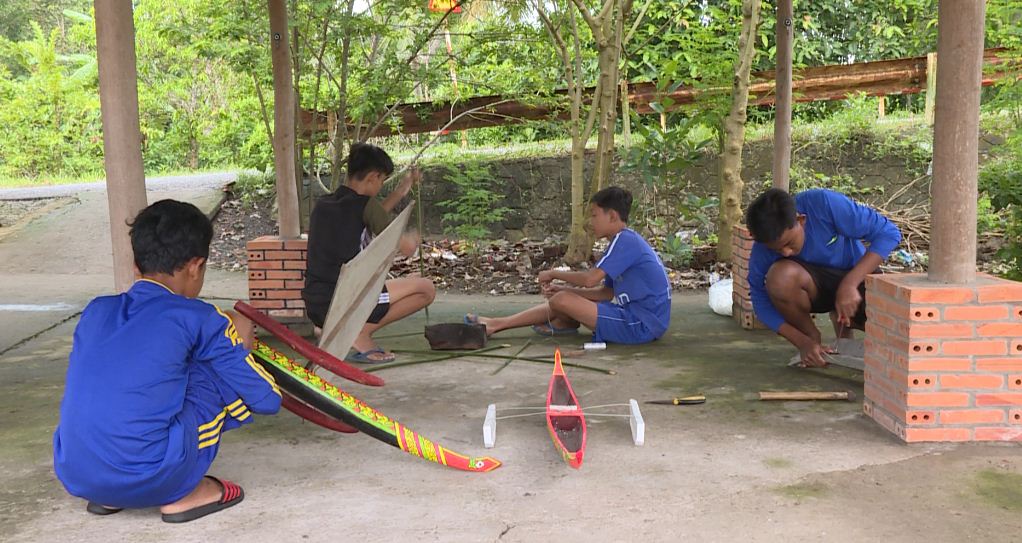 Các em thiếu niên Khmer học làm mô hình ghe ngo