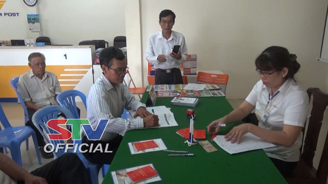 Cán bộ hưu trí huyện Mỹ Tú nhận lương qua dịch vụ Bưu điện.