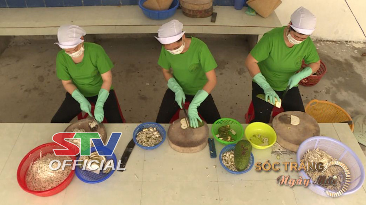 Mãng cầu thái nhỏ và đưa đi phơi trước khi ướp, xoáy làm trà.