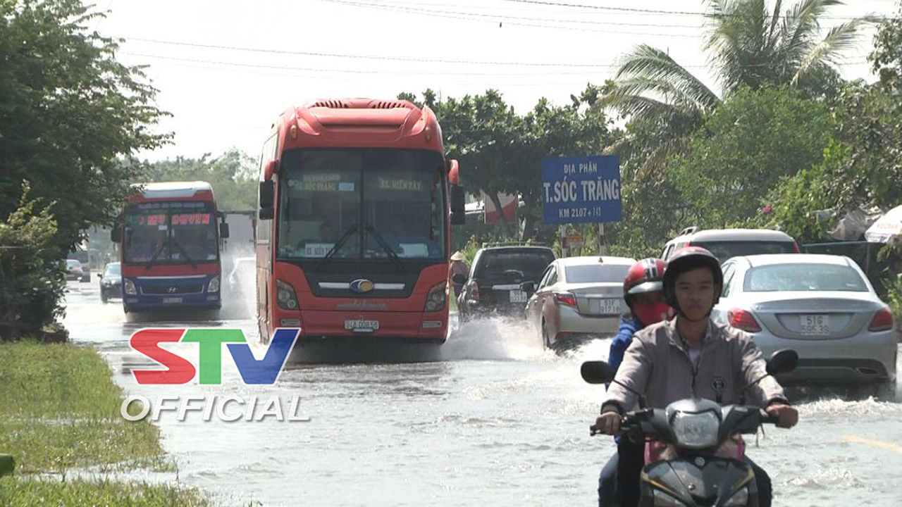 Trưa ngày 9/10, trên tuyến Quốc Lộ 1, đoạn giáp ranh giữa tỉnh Sóc Trăng và tỉnh Hậu Giang, do tuyến lộ ở đoạn này khá thấp nên đến 11h cùng ngày, con nước rong vào buổi sáng vẫn còn làm mặt đường ngập sâu và cảnh người dẫn xe vẫn tiếp tục diễn ra. Lại thêm một ngày, người và xe phải chịu chung cảnh nước ngập./.