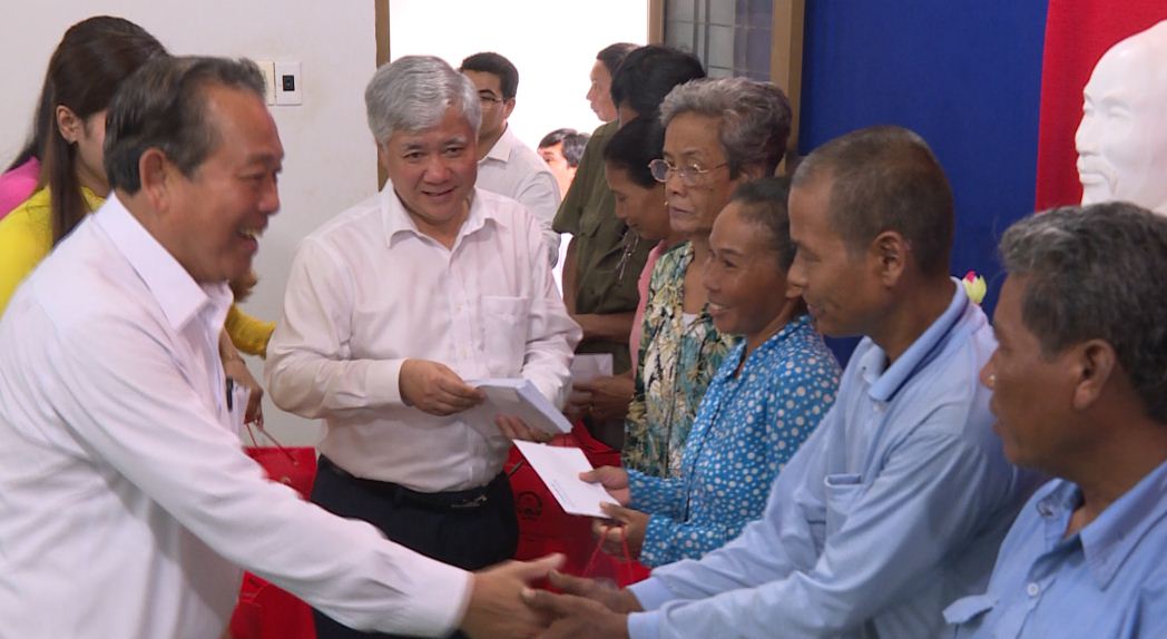 Phó Thủ tướng Thường trực Chính phủ Trương Hòa Bình tặng quà cho các gia đình chính sách