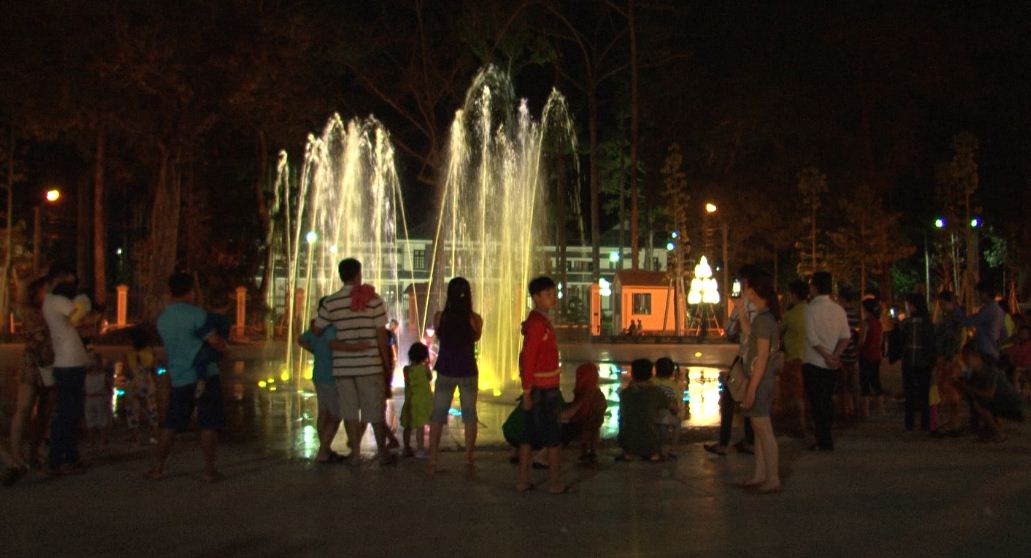 Người dân tham quan và chụp ảnh tại khu nhạc nước