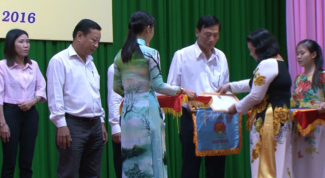 Trao cờ lưu niệm khai mạc hội thi Hóa giải viên giỏi cấp tỉnh năm 2016.