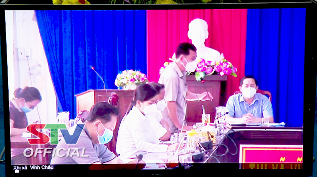 Điểm cầu thị xã Vĩnh Châu báo cáo tình hình dịch bệnh tại cuộc họp trực tuyến chiều ngày 7/8.