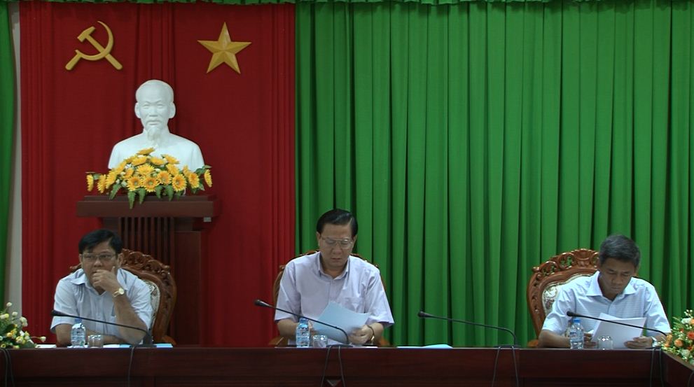 Ông Huỳnh Văn Sum ( giữa) Phó Bí thư Thường trực Tỉnh ủy Sóc Trăng chủ trì cuộc họp