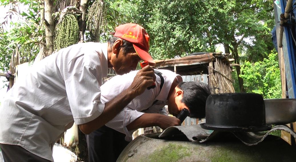 Kiểm tra mật độ lăng quăng trong dụng cụ chứa nước ở hộ gia đình.