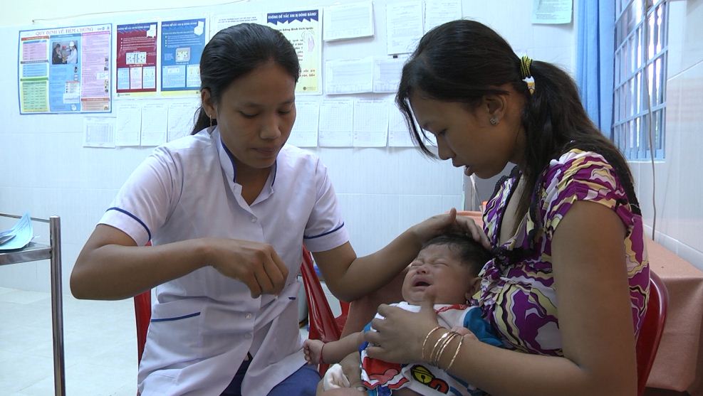 Trên phạm vi toàn quốc, từ năm 1985, Chương trình Tiêm chủng mở rộng đã được triển khai rộng rãi và cung cấp miễn phí các vắc xin cơ bản cho trẻ dưới 1 tuổi, giúp các bé phòng ngừa 6 bệnh truyền nhiễm nguy hiểm như lao, bạch hầu, ho gà, uốn ván, bại liệt, sởi. Qua đó góp phần giảm đáng kể tỉ lệ trẻ em mắc và tử vong bởi các bệnh truyền nhiễm. Đến nằm 2014, vắc xin thứ 12 đã được đưa vào chương trình. Theo đó ở Sóc Trăng, công tác tiêm chủng cho trẻ cũng được các Trạm Y tế xã chú trọng triển khai theo đúng quy trình, quy định của Bộ Y tế. Cụ thể tại các điểm tiêm, đều đảm bảo đủ diện tích tổ chức buổi tiêm, có sắp xếp, bố trí bàn tiêm, trang bị hộp chống sốc, quy định về sử dụng vắc xin, sinh phẩm y tế và đội ngũ cán bộ làm công tác tiêm ngừa được tập huấn các kiến thức cơ bản về bảo đảm an toàn trong tiêm chủng. Ông Huỳnh Văn Găng, Trưởng Trạm Y tế phường Khánh Hòa, thị xã Vĩnh Châu, cho biết: “Mỗi tháng Trạm đều tổ chức họp cộng tác viên để sơ kết và triển khai công tác y tế cộng đồng. Trong đó có công tác tiêm chủng cho trẻ, nhất là theo dõi số trẻ ở tháng trước chưa tiêm để nhắc phụ huynh đưa trẻ đi tiêm cho đúng phát đồ”.