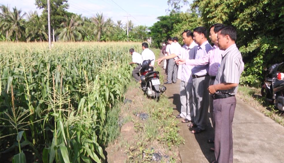 Tham quan mô hình đưa cây bắp xuống chân ruộng ở xã Long Phú, huyện Long Phú.