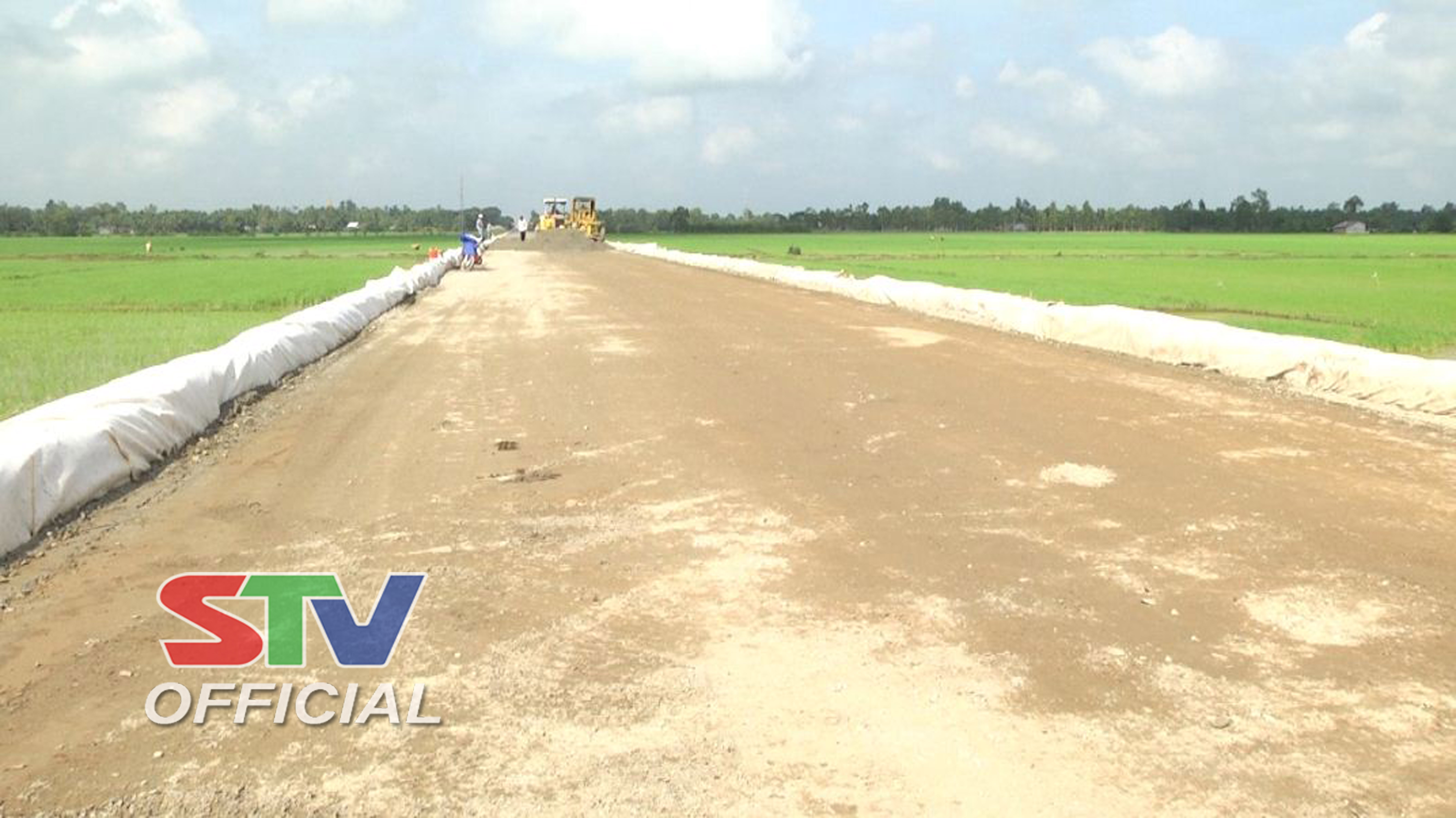Tuyến giao thông Sóc Trăng - Trần Đề giai đoạn sang lắp mặt bằng.