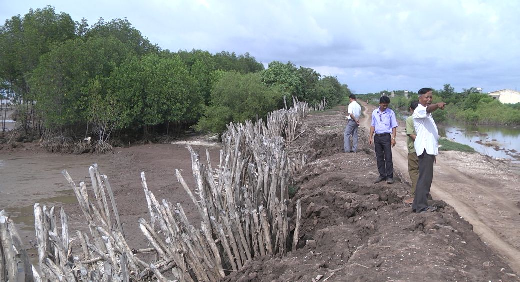 Tại đoạn K43 thuộc xã Vĩnh Hải có 2 điểm sạt lở, mỗi điểm từ 7m đến 15m, sâu vô thân đê 2m đến 4m, diễn ra từ cuối tháng 7/2016 đến nay. Còn tại cống số 2 thuộc xã Lai Hòa bị sạt lở từ giữa tháng 5/2016 đến nay khoảng 50m. Hai điểm nóng sạt lở này đều có điểm chung là rừng phòng hộ bên ngoài đê đã không còn.