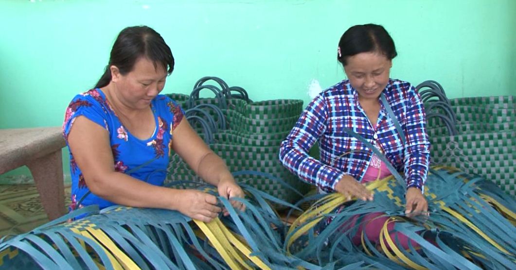 Nghề đan giỏ bẹ giúp chị em phụ nữ tăng thêm thu nhập cho gia đình.