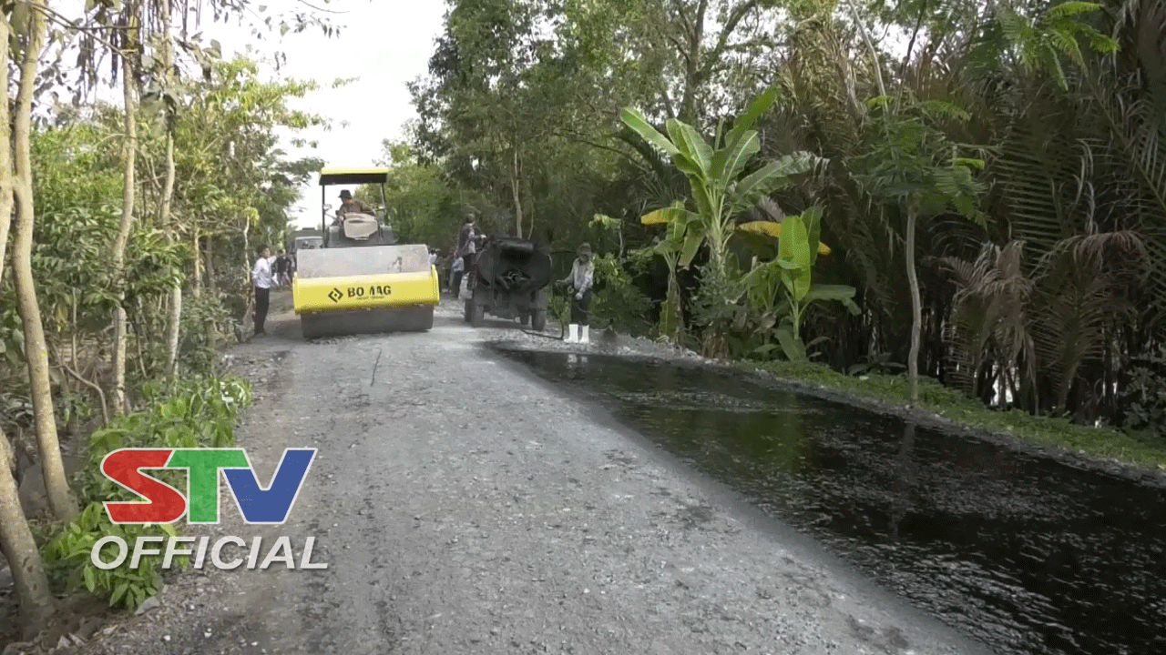 Thi công láng nhựa mặt đường, nâng chất tiêu chí nông thôn mới.
